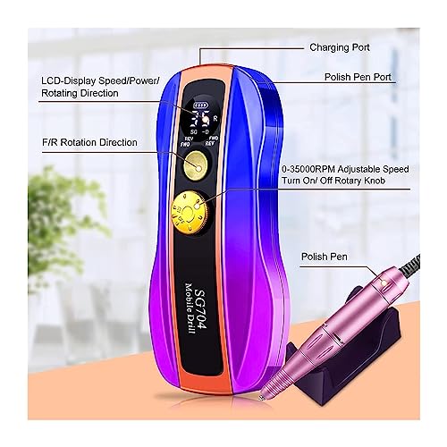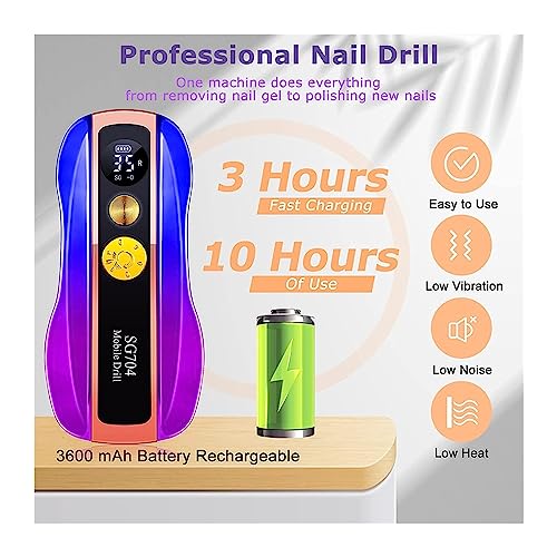 Specification: Nail Grinding Machine Electric Nail Drill for Acrylic Nails, Professional 35000RPM Rechargeable Nail Drill Machine for Acrylic Gel Polishing Remove for DIY Home or Salon Mani-Pedis