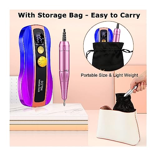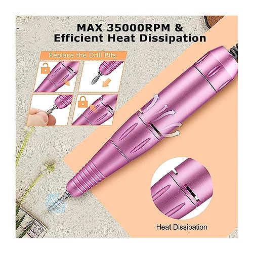 Nail Grinding Machine Electric Nail Drill for Acrylic Nails, Professional 35000RPM Rechargeable Nail Drill Machine for Acrylic Gel Polishing Remove for DIY Home or Salon Mani-Pedis