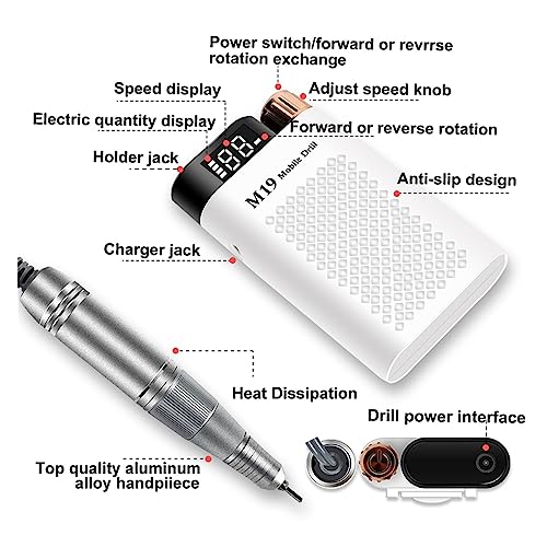 Specification: Nail Grinding Machine Nail Drill Manicure Machine, Electric File Nail Sander & Nail Drills Bits with LED Display for Gel Removing Nail Polish Pen Salon Tool for DIY Home or Salon Mani-Pedis