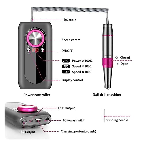 Specification: Nail Grinding Machine Rechargeable 35000RPM Nail Drill Rig HD LCD Display, Nail Master Nail Art, Portable Nail Drill Milling Machine, Grinding Head Kit for DIY Home or Salon Mani-Pedis