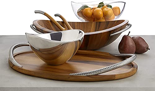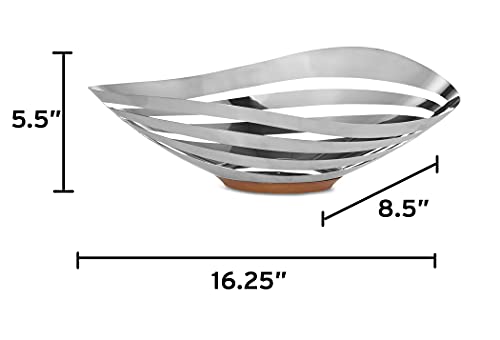 Nambe – Pulse Collection – Bread & Fruit Bowl – Measures at 16.25″ x 8.5″ x 5.5″ – Made with Acacia Wood and Stainless Steel – Designed by Sena & Seidenfaden Design