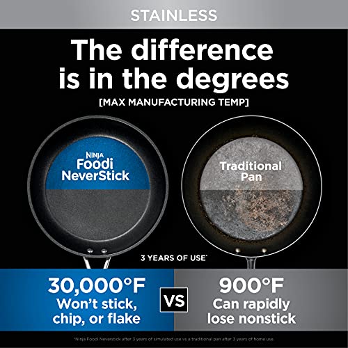 Specification: Ninja C62200 Foodi NeverStick Stainless 10.25-Inch & 12-Inch Fry Pan Set, Polished Stainless-Steel Exterior, Nonstick, Durable & Oven Safe to 500°F, Silver