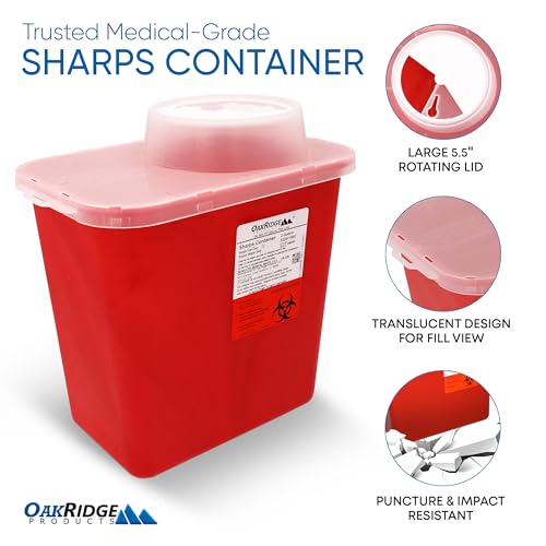 Specification: Oakridge Products Large Sharps Container for Home Use and Professional 2 Gallon (20-Pack) with Chimney Top, Biohazard Needle and Syringe Disposal, CDC Certified