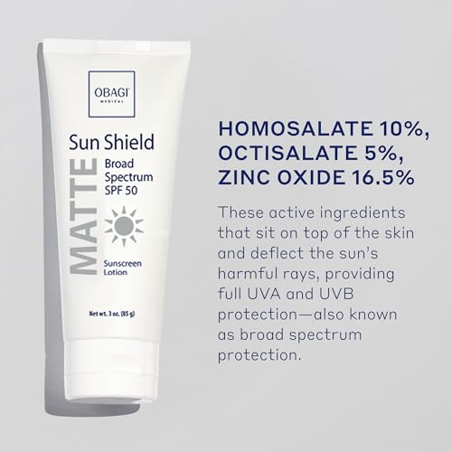 Sun Protection for All Skin Types: Sun Shield Matte Broad Spectrum SPF 50 sunscreen combines UVB and UVA protection in an elegant, matte finish that is non-comedogenic and dermatologist-tested