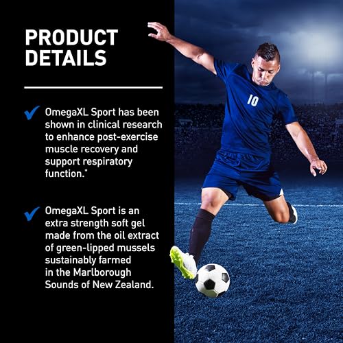OmegaXL Sport Extra Strength Muscle Recovery Supplement and Respiratory Support Supplement – Improves DOMS and ROM, Clinically Supported Green-Lipped Mussel Oil (60 Softgels)