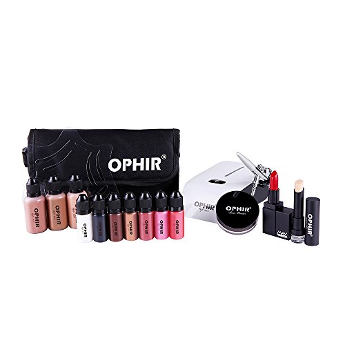 Specification: OPHIR Airbrush Makeup System Kit Air Compressor Cosmetic Airbrush Makeup Set with Eyebrow Template 3 Air Brush Foundation in 1 Ounce Bottles Includes Blush, Bronzer, Highlighter and Lipstick Concealer