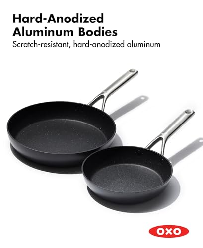 OXO Professional 8″ and 10″ Frying Pan Skillet Set, Hard Anodized Ceramic Nonstick Cookware PFAS-Free, Stainless Steel, Induction Suitable, Diamond Reinforced Coating, Dishwasher and Oven Safe, Black