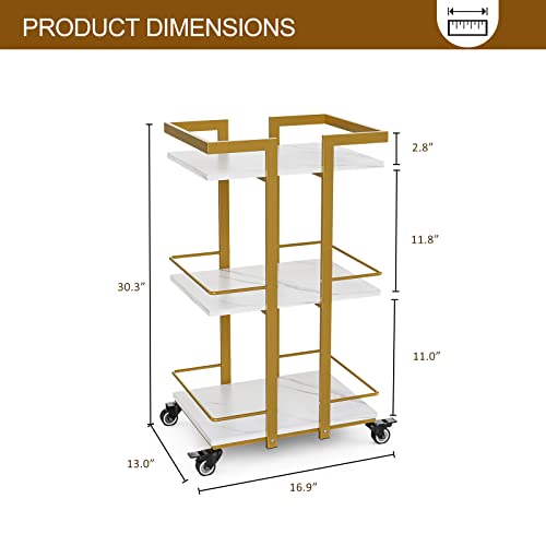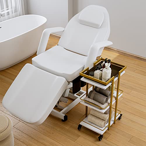Specification: Paddie Esthetician Cart with Wheels, Salon Lash Spa Rolling Trolley Cart, White & Gold
