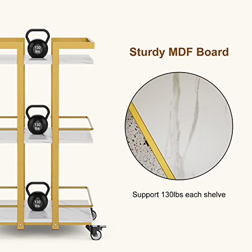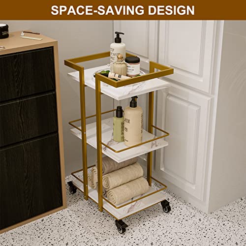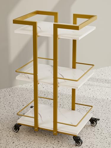 [Eye-catching Appearance] Given the sleek design with a glossy gold metal frame and luxury white marble MDF chipboard, Paddie esthetician cart with wheels appears a striking modern and elegant look, arbitrarily matches various styles of salon furniture while also allowing you to get rid of the messy shop.