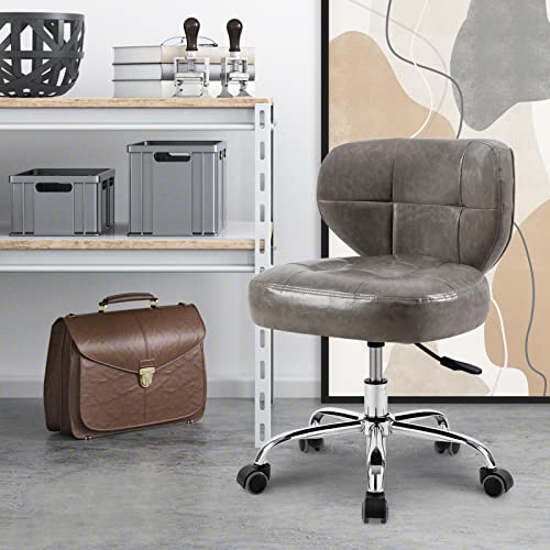 Paddie Pedicure Stools for Nail Tech Set of 2, Hydraulic Salon Spa Stool Back Support Short Height Adjustable Swivel Chair, Perfect for Massage/Tattoo/Esthetician/Shop/Medical, Grey