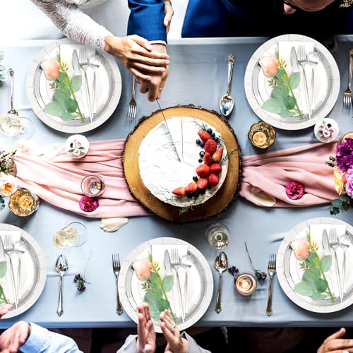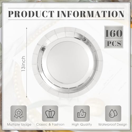 Specification: Patelai 160 Pcs Wedding Disposable Charger Plates Bulk 13 Inch Charger Dinner Plate Paper Cardboard Charger Service Plates Round Dinner Charger for Bridal Party Baby Shower Table Setting (Silver)