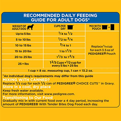 Every dog deserves the best… that’s why PEDIGREE with Tender Bites for Small Dogs was made especially for your pint-sized pup. It has all the nutrition they need to be happy and healthy for life. With small chewy bites mixed with dog kibble, this delicious dry dog food delivers 100% complete and balanced nutrition for adult dogs. The wholesome recipes have no fillers, no artificial flavors, and no high fructose corn syrup. And the kibble helps to gently clean their teeth with every bite. Irresistible in every way, PEDIGREE with Tender Bites helps you feed the good in your pup in all their favorite tail-wagging flavors.