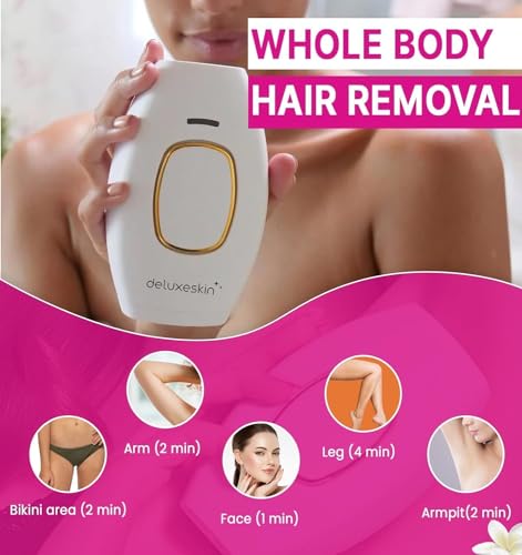 Fast & Easy: Deluxeskin Hair Removal Treat any body part in minutes (excluding the eyes and neck) with safe and painless at-home hair removal. Noticeable hair reduction can be seen within days, providing long-lasting smooth results.