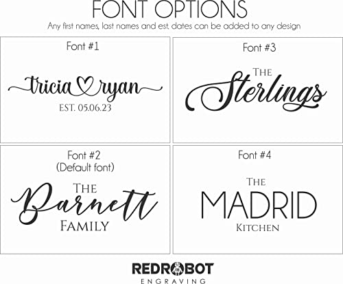 The board can be personalized with a family name (The Strykers, Brad & Jackie, Est. 2022), a cute saying, a wedding date, etc.
