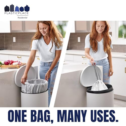 Specification: Plasticplace Custom Fit Trash Bags, Compatible with simplehuman Code K (200 Count) White Drawstring Garbage Liners 10 Gallon / 38 Liters, 24″ x 28″