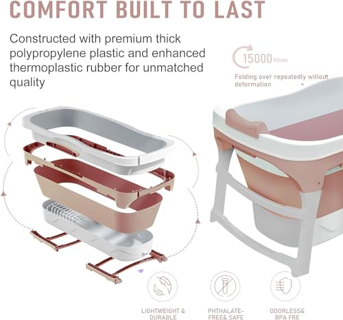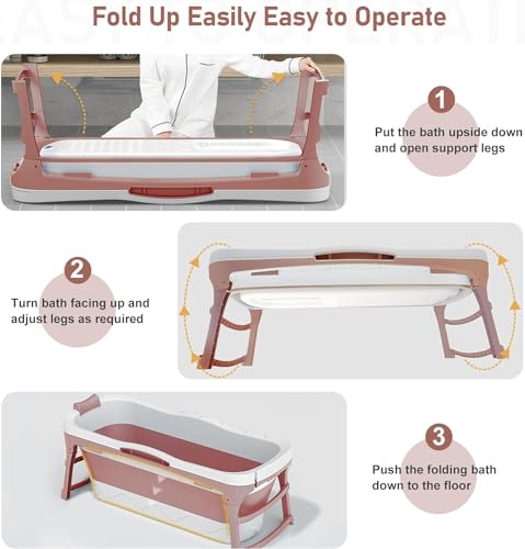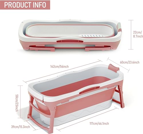 Specification: Portable Bathtub-Large 56″Foldable Collapsible Tub for Adults-Soaking Bathtub with Side Handles&Waterproof Neck Pillow&Foot Massage Roller(pink)
