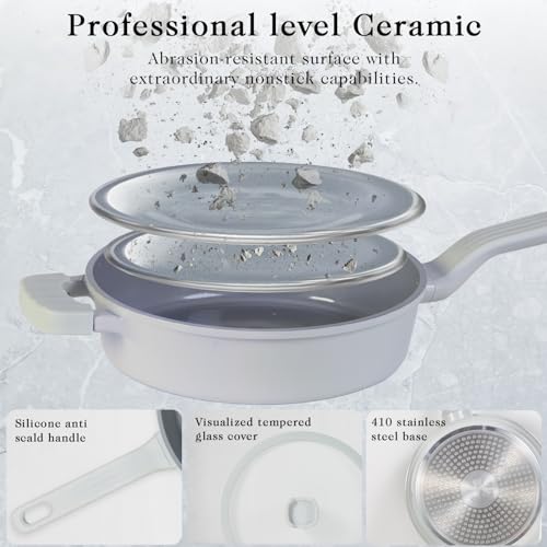 Ultra Non-Stick Performance : We use high quality ceramic coating, you can experience 10X superior non-stick cooking with minimal oil. Make food healthier. The ceramic surface is smooth and eggs can slide effortlessly from the pan. Easily cook a variety of delicious foods.