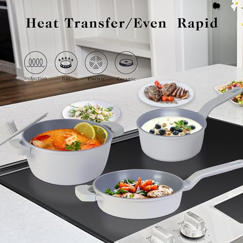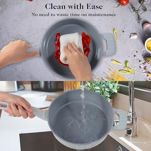 Easy to Clean & Storage: Our cookware is dishwasher safe, A simple rinse or quick wipe will easily remove any residue, ensuring your cookware is spotless and easy to keep in pristine condition. Save 80% kitchen space by neatly stacking pots and pans in cabinets or drawers; Not only suitable for home use, but also ideal for RV and campers.