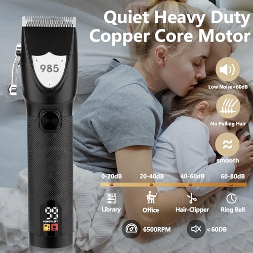 【Large Capacity Battery & LCD Display】- The LCD display clearly shows power left, oiling reminder, and charging reminder. support two ways of use, wired and wireless, The USB cable can compatible with any USB charger interface, Hair clippers charging 2.5 hours use time 150 minutes, Hair trimmer charging 2 hours to enjoy 180 minutes of trimming, Nose trimmer charge 1.5 hour use time 150 minutes