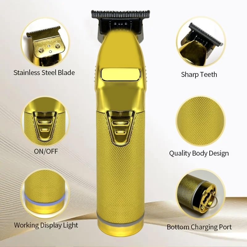 Professional Hair Trimmer For Men Barber Rechargeable Hair Clipper Cordless Hair Cutting Powerful Machine Hair Beard TrimmerFeature:Dual voltage:110-240V,50/60Hz, 5WBlade:can be zoro gappedColor:gold, silver, black, redMotor:high speed strong pivot motorWorking:cord or cordless useMaterial:Electroplating ABS+aluminumIndacition light display:charging reminder; working reminderCharging time: 3 hoursWorking time: 2 hoursAttachment combs (4pcs):3.0mm(1/16″)/6.0mm(1/8″)/9.0mm(1/4″)/12.0mm(3/8″)User manual:EnglishPackage:Cleaning brush * 1User Manual * 1Machine*1Charger*1Attachment comb*4Packing box*1