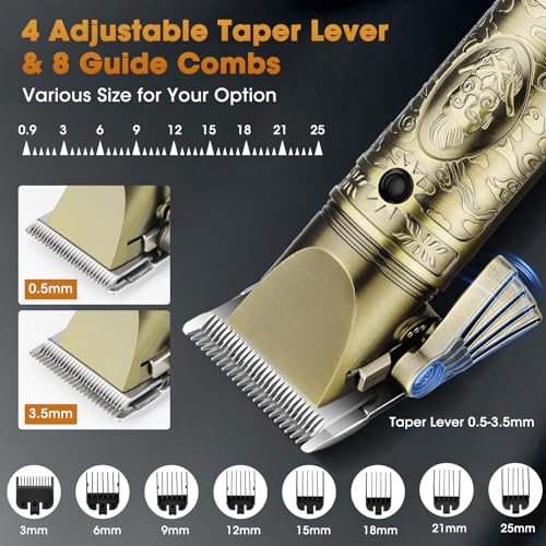 [Powerful Motor & Stainless Steel Blade] – The cordless cutting kit is equipped with powerful 6500-7500rpm motor, provides higher efficiency and quickly accurately performance for trimming.Plus the clipper blade adopts precision stainless steel blade, which can maintain long-term sharpness without pulling the hair. You can easily control the hair length and trim a variety of hairstyles with adjustable taper lever and guided combs.