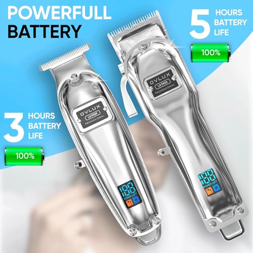 Professional Hair Clippers: Full metal cordless clippers and trimmer set for precise hair cutting and detailed beard grooming.
