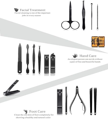 Specification: Professional Stainless Steel Nail Clipper Travel & Grooming Kit Nail Tools Manicure & Pedicure Set of 15pcs with Luxurious Case (Black/Yellow)