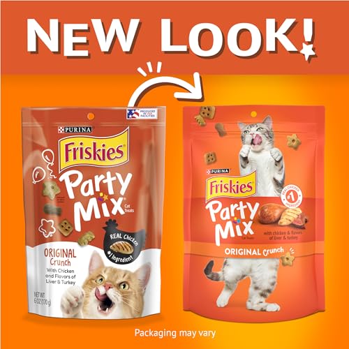 Purina Friskies Party Mix Original Crunch adult treats for cats are crafted in Purina-owned U.S. facilities and backed by Purina’s more than 90 years of innovation