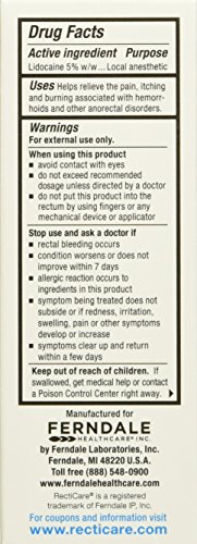 Specification: Recticare Anorectal Lidocaine 5% Numbing Cream 1.5 Oz – (3 Pack of .5oz) – With Finger Cots (Maximum Strength Local Anesthetic to Numb for Fast Pain Relief)