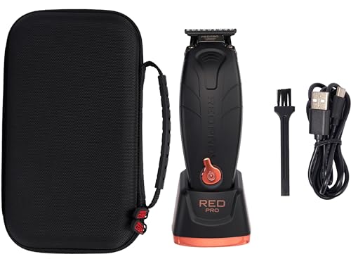 RED Pro Professional Cordless Hair Finishing Trimmer for Men, Electric Rechargeable Wireless Beard Detailer for Barbers and Stylists, Diamond Like Carbon Coated T-Blade with Zero Gapped (Matte Black) Bundled with a Men Grooming Pouch Travel Friently Made with Mesh Inner Pocket, Hard Zipper, Handle, Water Resistant Exterior