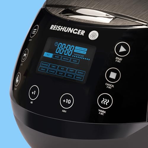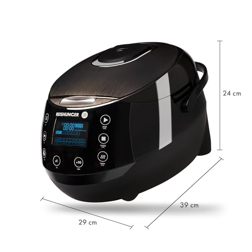 Specification: Reishunger Digital Rice Cooker and Steamer, Black, Timer – 8 Cups – Premium Inner Pot, Multi Cooker with 12 Programs & 7-Phase Technology for Brown Rice, Soups, Grains, Oatmeal & more – 1-8 People
