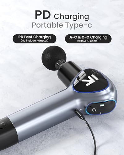 Fast Type C Charging: This Mini massage gun with an extension handle supports C-C, and USB-C(only USB-C cable with the package), which can be powered by a 5X longer cycle rechargeable battery. The excellent battery life also allows you to carry it with you and use it for a long time to relieve fatigue and reduce stress anytime and anywhere