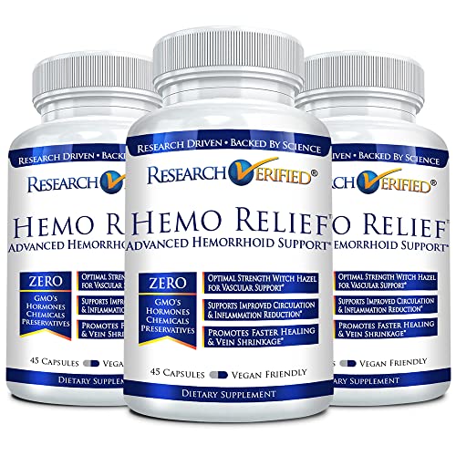 Research Verified Hemo Relief – with Horse Chesnut, Witch Hazel, Rutin, Hesperidin, and More – Dual-Action Formula – 3 Bottles – Made in The USA