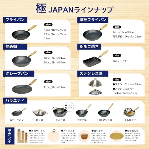 Specification: Riverlight J2328 Kyoku Japan Iron Thick Plate Frying Pan, 11.0 inches (28 cm), Iron Nitride, Nitrided, IH Compatible, Rust Resistant, Made in Japan