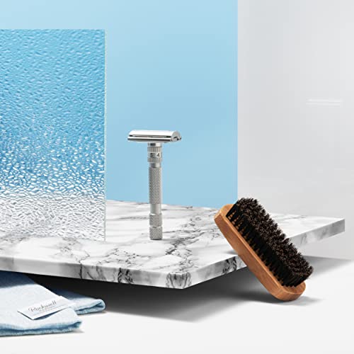 Rockwell Razors T2 Brushed Chrome Safety Razor for Men and Women with Infinite Shaving Settings, 25 Fully Recyclable Blades and Travel Leather Bag