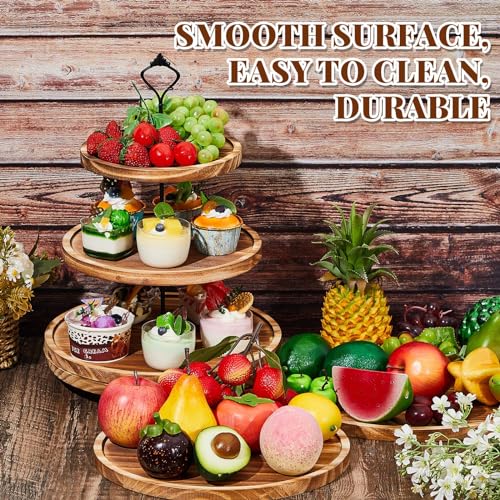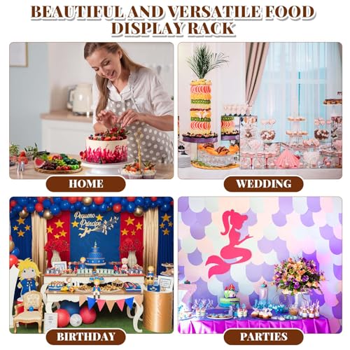 Wood Cake Stands Set: you will get 1 set of 3 tier serving tray, 1 rotatable cupcake stand, 1 set of 4 tier wood display stand, 1 square tray, 2 round trays, delicate and practical, enough to meet your different occasions need; Warm reminder: please do not wash them with water or expose to high temperature; Please wipe it gently with a slightly moist towel and let it dry naturally