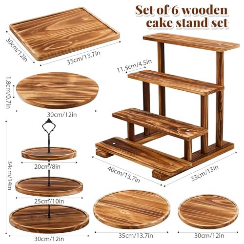 Specification: Roowest Wood Cake Stands Set of 6 Wood Dessert Tower Dessert Trays Desert Stands Cupcake Stand Rustic Wood 3 Tier Cupcake Serving Stands with Dessert Trays Farmhouse Wood for Tea Party (Brown)
