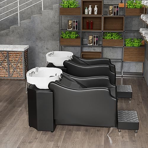 Stylish Design ❤ With a stylish design that blends quality, style, and functionality, the Shampoo Bowl and Chair is perfect for beauty salon, esthetician room or barbershop. With a black porcelain bowl and stylish black vinyl upholstery, and streamlined armrests that fit the natural curve of the arm, add aesthetic feeling but also provide comfort and support.