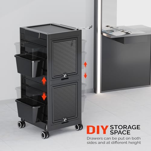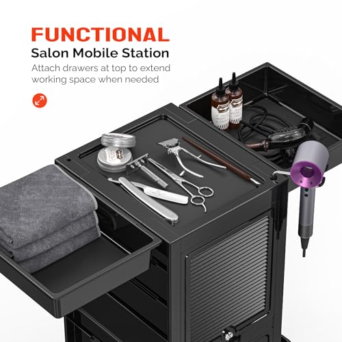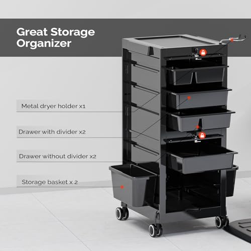 ✔ Thoughtful Design: Equipped with 2 lockable doors to protect your personal tools. The rolling caster can smooth moving on any floor, and the upgraded hair dryer holder is suitable for all types of hair dryers