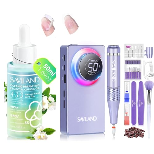 Specification: Saviland 50000RPM Nail Drill & Cuticle Oil: 2024 High Tech Fast Removal Electric Nails Drill Kit 6000mAh Rechargeable Machine Dremal Professional Drill Bit Nail File Buffer Tools