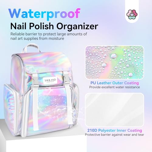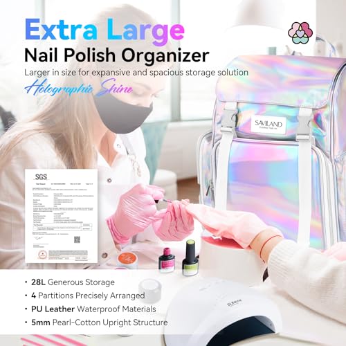 🎈Extra Large Nail Polish Organizer: Holds up to 70 bottles with additional storage for tools and a salon-sized lamp. Durable, waterproof material for long-lasting use.
