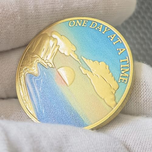 Specification: Serene Beach Sunrise Sobriety Chip ONE Day at A TIME AA Medallion Serenity Prayer Coin Recovery Gift (Single Coin)