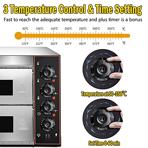 Specification: Shikha Commercial Pizza Oven 16 inch Pizza Double Deck 3000W 110V Electric Oven Multipurpose Toaster Bake Broiler 40L Capacity Stainless Steel for Restaurant Home Pizza Pretzels Baked Roast Yakitori