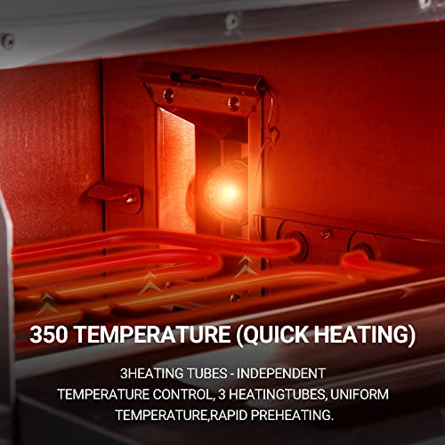 【HIGH QUALITY】Made of the stainless steel material, durable and sturdy to use, ensuring a high-quality countertop pizza oven for long time usage. It looks dedicate, easy to clean and maintain.