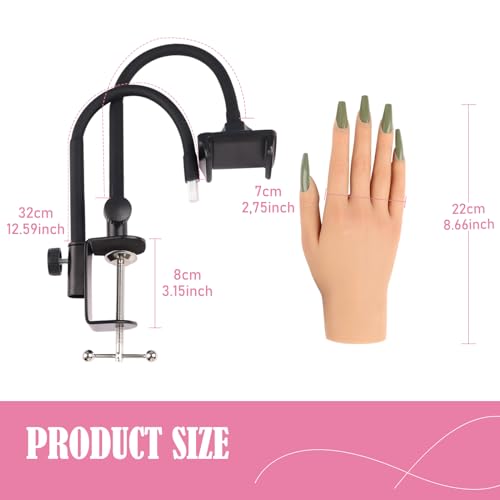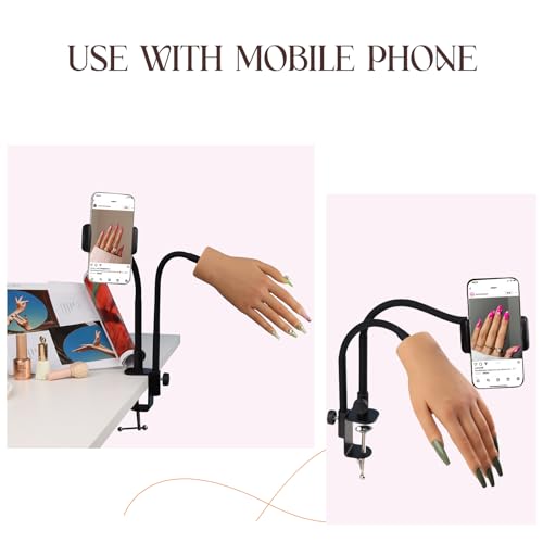 Specification: Silicone Practice Hand for Acrylic Nails,Silicone Nail Hand Practice with Mobile Phone Holder,Silicone Nail Hand for show,Fake Training Hand with Manicure Kits for DIY/Nail Salon Artists/Nail Artist