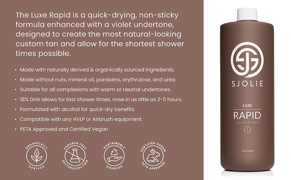 Specification: SJOLIE Rapid Spray Tan Solution – Luxe Ultra One Hour Express Tan – Violet Base | Sunless Tanner for a Quick-Drying, Ultra Dark Glow (8oz)
