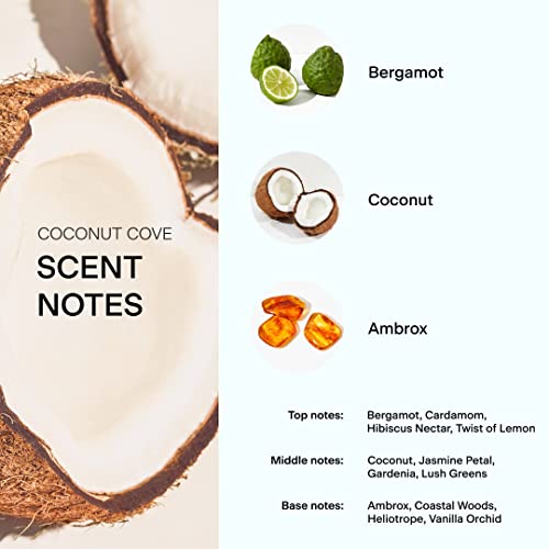 SCENT NOTES – Experience Coconut Cove, a scent to transport your spirit where creamy coconut mingles with the scent of coastal winds. Blooms of jasmine and gardenia are intoxicating yet tranquil.