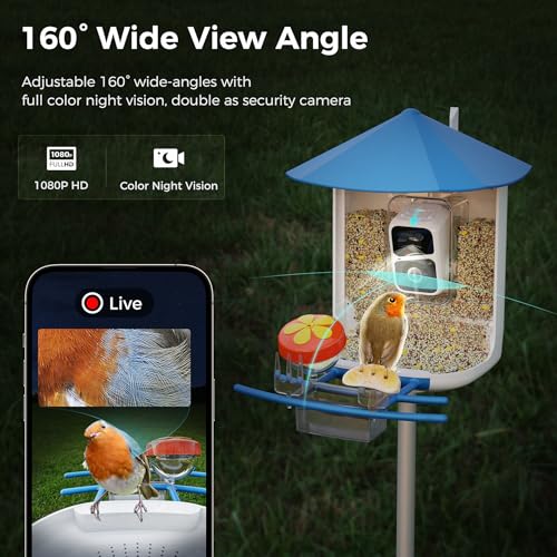 Smart Bird Feeder with Camera,Wireless Wild Bird Feeders, 160° Wide View Auto Capture Bird Videos & Motion Detection,AI Identify, DIY Add-ons & Hummingbird Feeder,Gift for Bird Lover