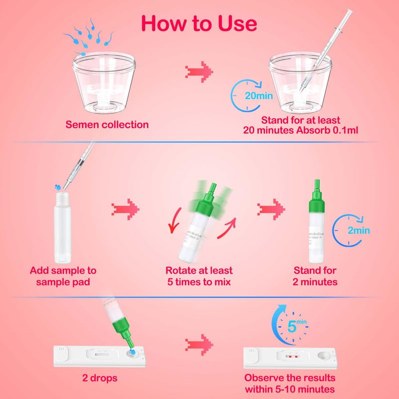 𝐄𝐀𝐒𝐘 𝐓𝐎 𝐔𝐒𝐄: Step-by-step illustrated instructions walk you through the simple sperm-test process from start to finish.