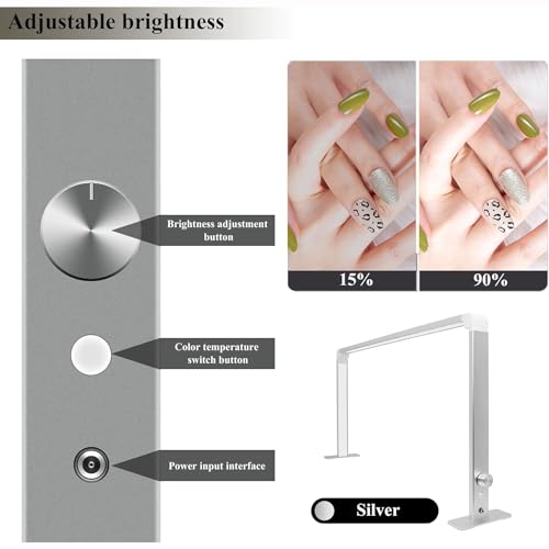 Specification: Square Foldable Nail Desk Lamp for Nail Tech,Led Nail Desk Lamp for Nails,Led Manicure Desk Lamp | Tattoo Light | Lash Tech Light,3 Color Temperature 4000k-6500k for Nail,Silver